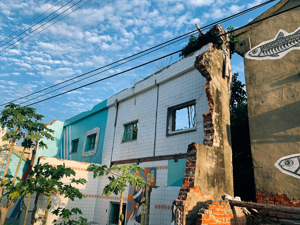 旁邊走過去是殘破的房子,不過半殘的房子卻因為藝術感染了新的美好視覺衝擊。