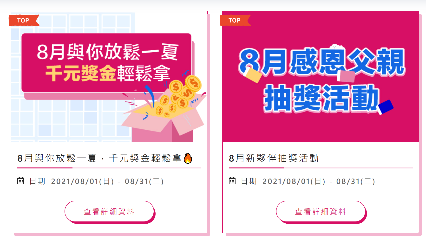 八月真的是光輝!一共有兩檔招募活動,通常都是一檔,感謝父親,感謝老爸!不免俗也要簡單介紹這兩檔活動: