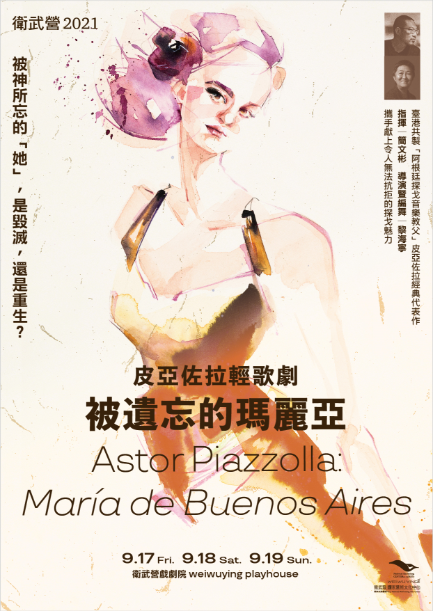 適逢皮亞佐拉百年誕辰紀念,2021年高雄衛武營與香港城市當代舞蹈團共同製作《被遺忘的瑪麗亞》,再現《布宜諾斯艾利斯的瑪麗亞》原作風采也積極展現當代新意。演出全長約110分鐘,全西班牙文演出,含中英文雙語字幕,序曲的手風琴音一下,保證顛覆觀眾對於「歌劇」的各種既定印象,臺港共同製作攜手指揮簡文彬、編舞家黎海寧,再現令人無法抗拒的探戈魅力!