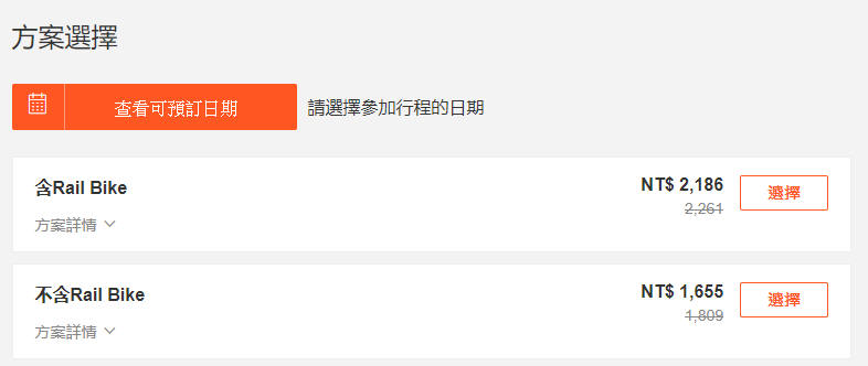 一共有兩種方案,不同方案就有不同的出發時間,也是不一樣的價格。