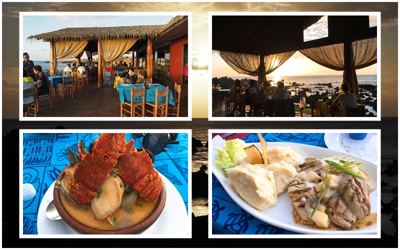 可以在這裡看夕陽,邊吃晚餐,邊看夕陽從海平面掉落,建議可以點復活節島的海鮮湯,特色是放了當地特有的木薯,以及龍蝦與鱒魚,同時也推薦當地的鱒魚餐,加上復活節特產的鳳梨醬料,簡直就是完美絕配。
