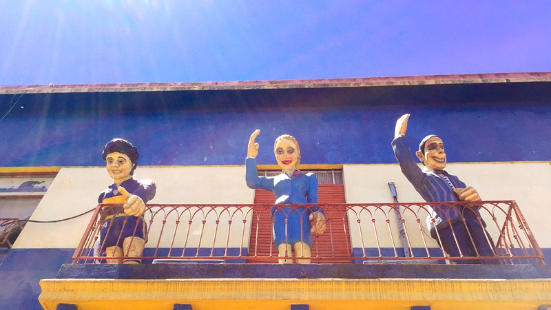 Sofia告訴我在拉波卡區,隨時要抬起頭,都會有意想不到的驚喜給你,沒錯,這裡的窗檯區前擺置特色的人偶,人偶栩栩如生,帶些詼諧,還有幽默,跟色彩繽紛的房子對稱,彷彿走入了卡通夢幻的國度。