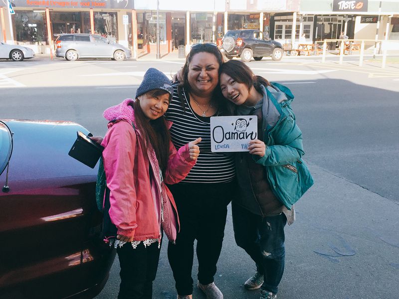 事實上,更妙的事情發在之後,聊到一半這位五個孩子的紐西蘭媽媽就問我們肚子餓不餓,然後一走進去就看到一個男孩拿著牌子寫 OAMARU,哈哈!還沒有站在馬路上準備搭便車,就被我們撿走,德國男生叫做馬丁!他也覺得超幸運。