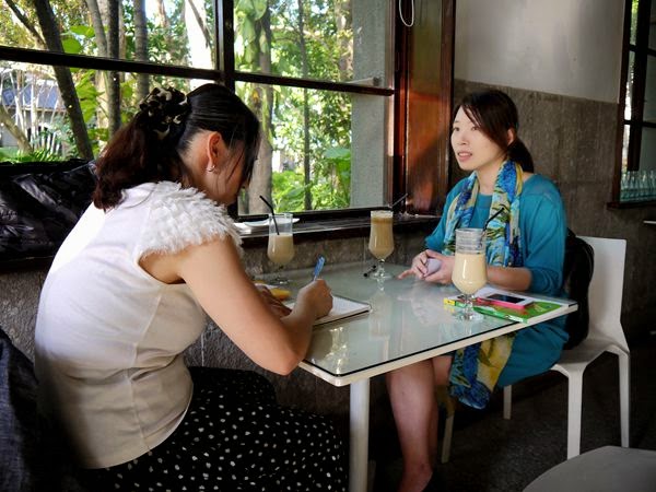 我跟依娃面對著相坐,旁邊還有我的好友珮琪,三個人同在一個方桌,外面是灑落的樹蔭點點,我也忘了怎麼開始,但是一講起那段旅程,我再也無法按奈內心的激動。