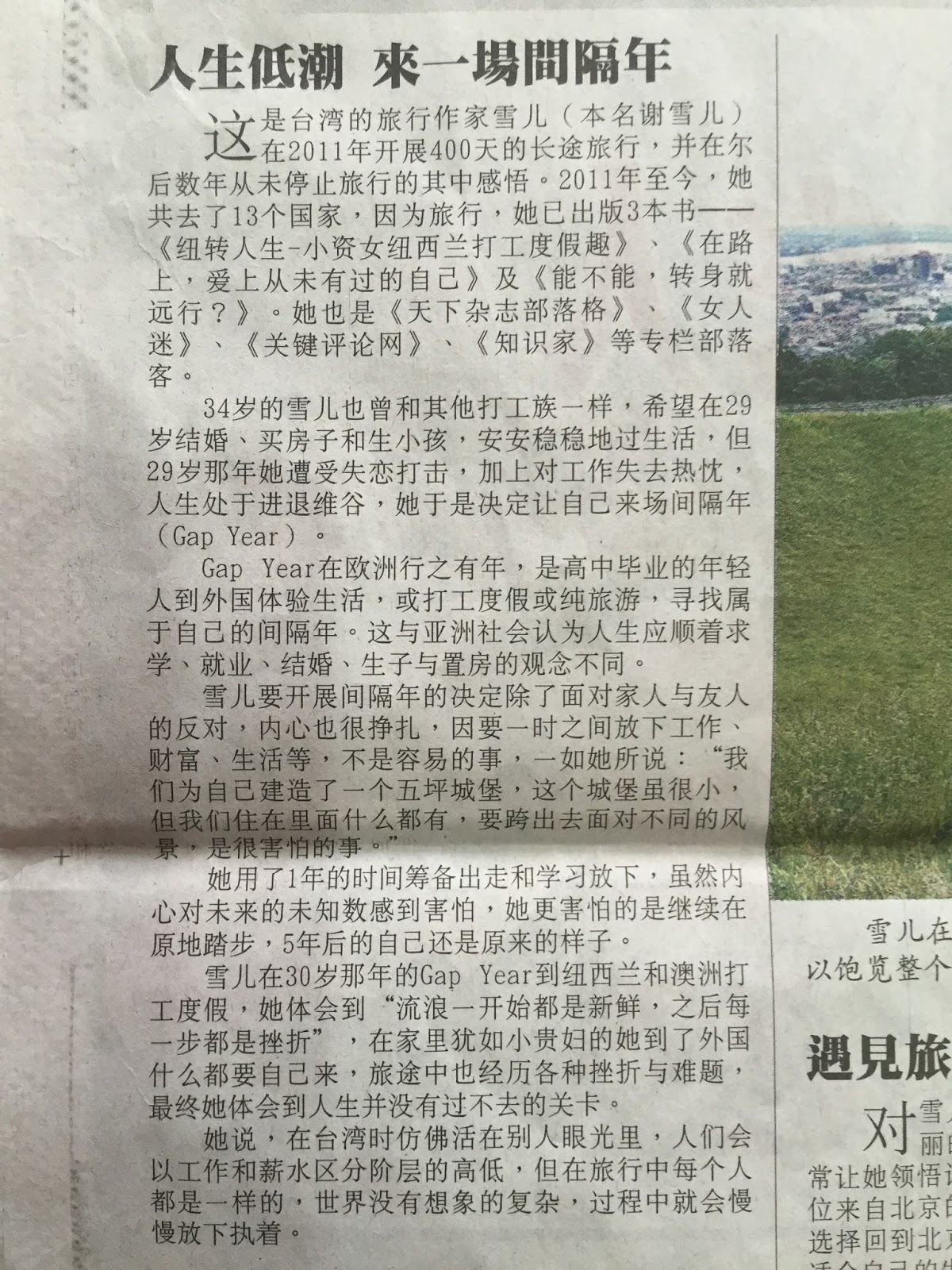 馬來西亞星洲日報 人生就要有Gap Year專題報導