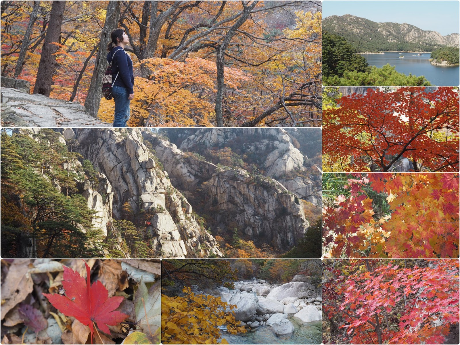 上山約2.5小時,下車約1.5小時,即使風景如畫,楓葉超美,總覺得哪裡怪怪的,這麼美的地方也只有我們一團人享受,而金剛山也曾被宋代大文豪-蘇東坡褒揚,寫下『願生高麗國、一見金剛山』來仰慕金剛山之美,而金剛山之於北朝鮮,就像黃山之於中國一樣,所以得名金剛山,源於華嚴經曾提到「金剛山」有12,000峰,剛好這裡群峰相連,怪石嶙峋,非常符合佛經中的描述,秋天楓紅更是美不勝收。