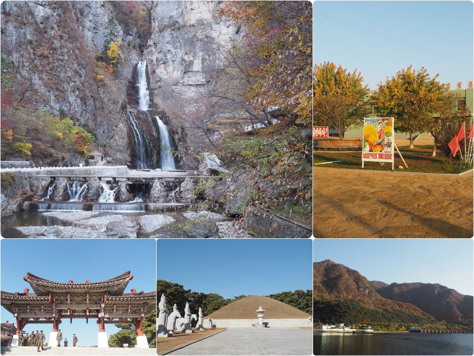 元山沒有什麼好玩的,實在於從平壤到元山中間的馬路非常糟糕,沒有柏油路,都是戰備路,所以整個巴士從平壤離開之後,就彷彿做了鐵馬,一路顛頗到底,其中會停幾個景點,包括【東明王陵】以及【新坪水庫】與【雲林瀑布】。